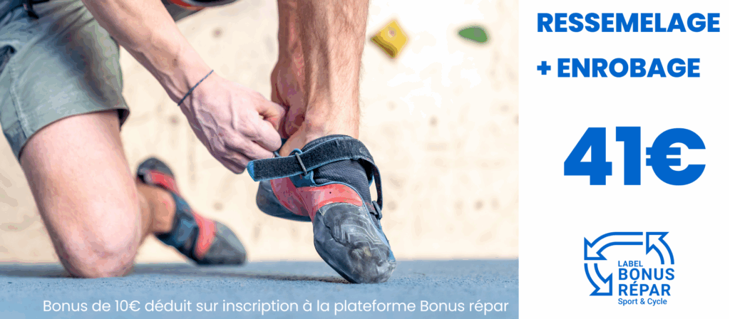Pour en savoir plus consultez notre article pour connaitre la démarche pour bénéficier de cette réduction : https://moncordonnier.com/reparez-vos-chaussons-descalade-avec-le-bonus-repar-chez-moncordonnier/